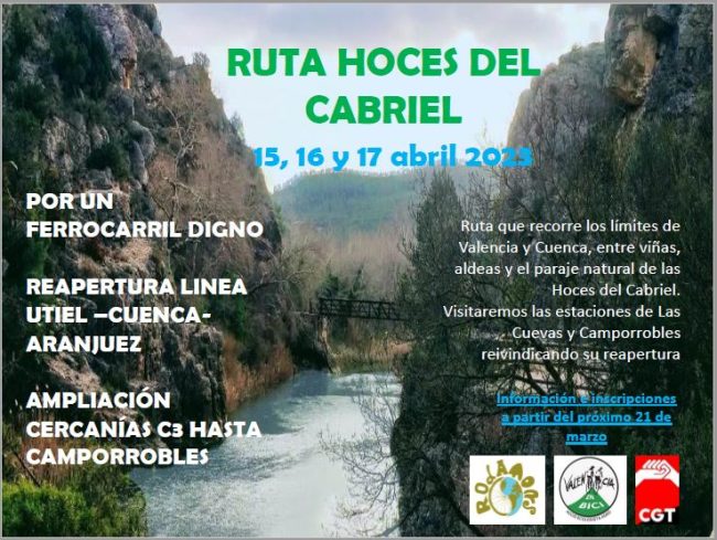 REAPERTURA LÍNEA UTIEL-CUENCA-ARANJUEZ AMPLIACIÓN CERCANÍAS C3 HASTA CAMPORROBLES El cierre de la línea Utiel-Aranjuez ha sido una muerte anunciada desde que los Gobiernos que han ido turnándose en el poder durante la democracia, decidieron impulsar el AVE y se construyó la línea de alta velocidad entre València y Madrid. Antes, pero, sobre todo, desde entonces, esta…